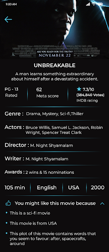 Note: Movie Ratings is a movie rating app, not a movie streaming app. You can not watch movies in the app, but you can find the best movies to watch.