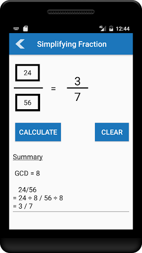 Easy fraction calculator provides a simple two step interface for school children to do calculations including fractions with ease.