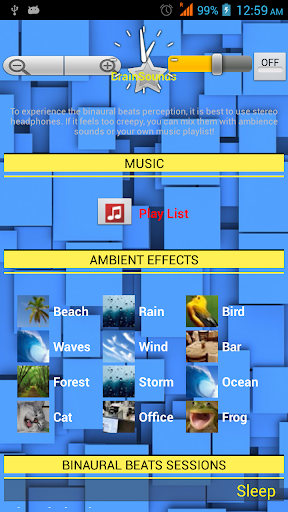 I like the wavelengths. I don't like the graphics, they're too busy. I can't switch off the app sometimes either. It always hangs in the background. I have to go into settings and stop the app and clear data etc. There's always 2x pause/resumes yet I only started one.