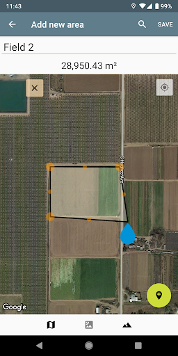Tap the corners of your lot/field/region in the map view to measure its area in acres or hectares.