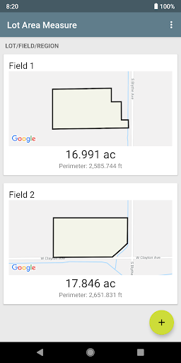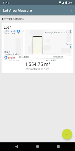 Measurements are available in acres, hectares, square feet, square meters, square kilometers, square miles, and square yards. Odd shapes and irregular shapes are supported as well as ordinary quadrilateral shapes. This app may also be used to calculate roof areas for flat roofs. App works at different map zoom levels and works for lot area, field area, and general land/property area of various sizes.