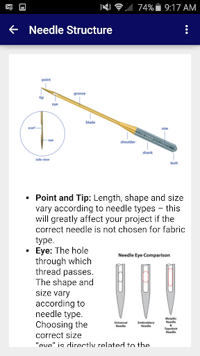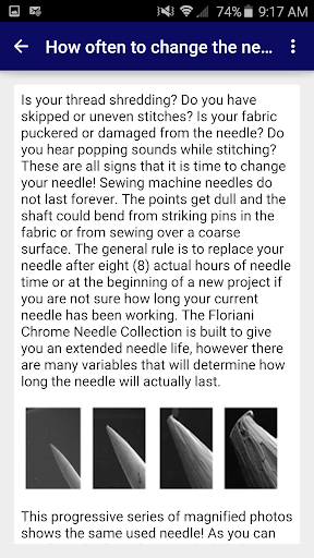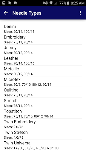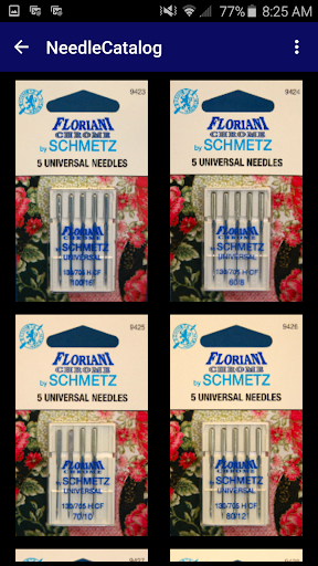 This app serves as a comprehensive reference for using Floriani Chrome needles by SCHMETZ.