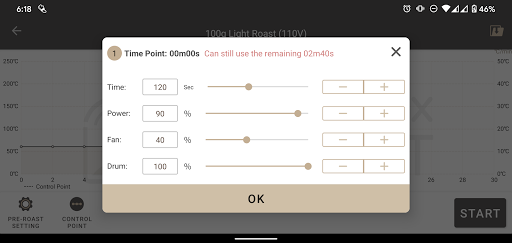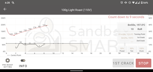 The smart home coffee bean roaster Sandbox R1 connects smartphones with Bluetooth. The app comes with pre-programmed roast settings to make different roast levels: Light/Medium/Dark Roast for users to utilize and also manual settings to adjust roast parameters: Heat/Fan-speed/Drum Rotations Control for users to enjoy the fun of roasting their own exclusive flavors.
