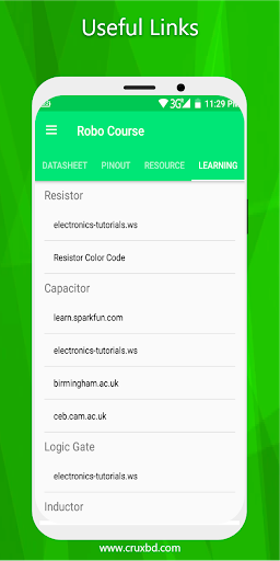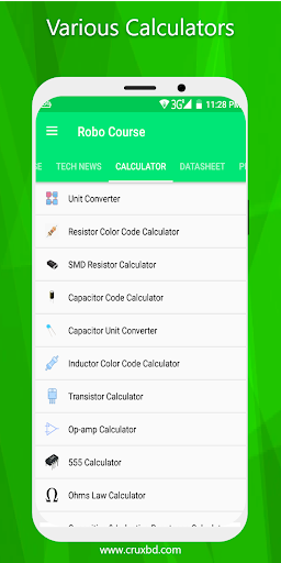 This app is an absolute all in one learning app for robotics, electronics, IoT, Drone making, programming, etc. We are frequently adding more courses. You will be notified about the latest tech news in TECH NEWS section. Besides this, it has tons of electronics calculators, thousands of electronic component datasheet collection, lots of pinout, resources for electronics, etc.