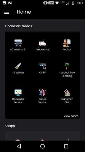 You can find skilled persons for home services from corresponding categories . The main function of the app is for skill registry and find jobs for skilled persons and find such persons for users.