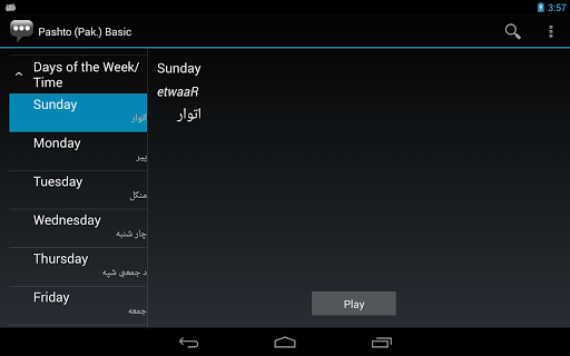3. On the phrase detail page, the phrase itself is shown alongside its pronunciation and the equivalent English phrase. Press the Play button to hear the audio pronunciation by a native speaker.