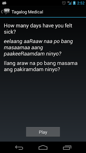 3. On the phrase detail page, the phrase itself is shown alongside its pronunciation and the equivalent English phrase. Press the Play button to hear the audio pronunciation by a native speaker.