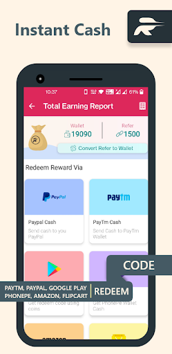 Refer it to your friends to earn more cash. Transfer earned money to your Paytm wallet using the money-making app.