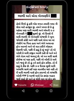This application contains latest stories of Gujarati girl, Gujarati school girl, Jijaji-Sali, Devar-bhabhi, Gujarati college girl, Indian virgin girl, villege girl, desi couple, padosan bhabhi ,girlfriend stories etc in Gujarati.
