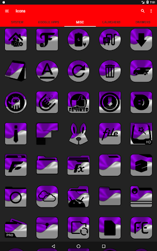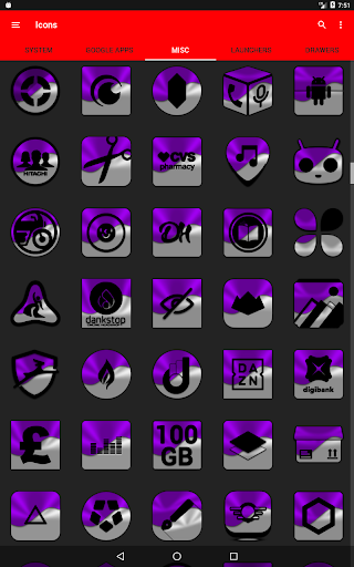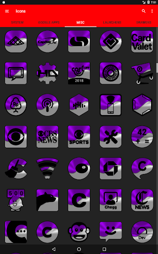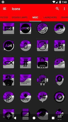 3.Select the icon, this will show your icon packs, select HL Purple and choose your favourite icon, Built-in Search Feature within the App.