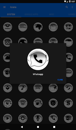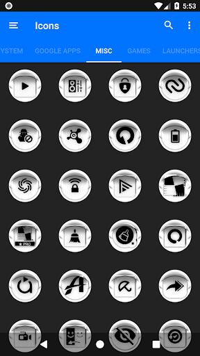 3.Select the icon, this will show your icon packs, select White S4 and choose your favourite icon, Built-in Search Feature within the App.