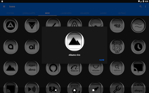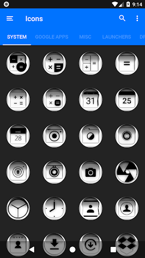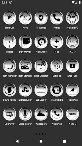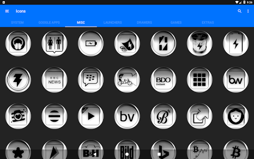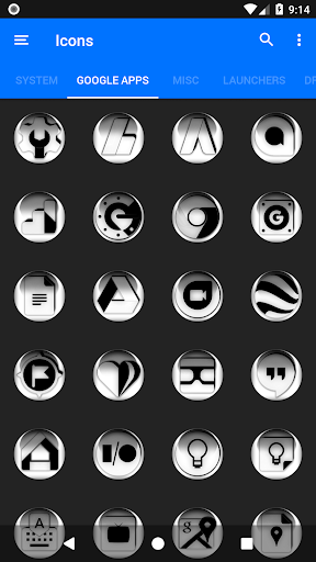 3.Select the icon, this will show your icon packs, select White O and choose your favourite icon, Built-in Search Feature within the App.