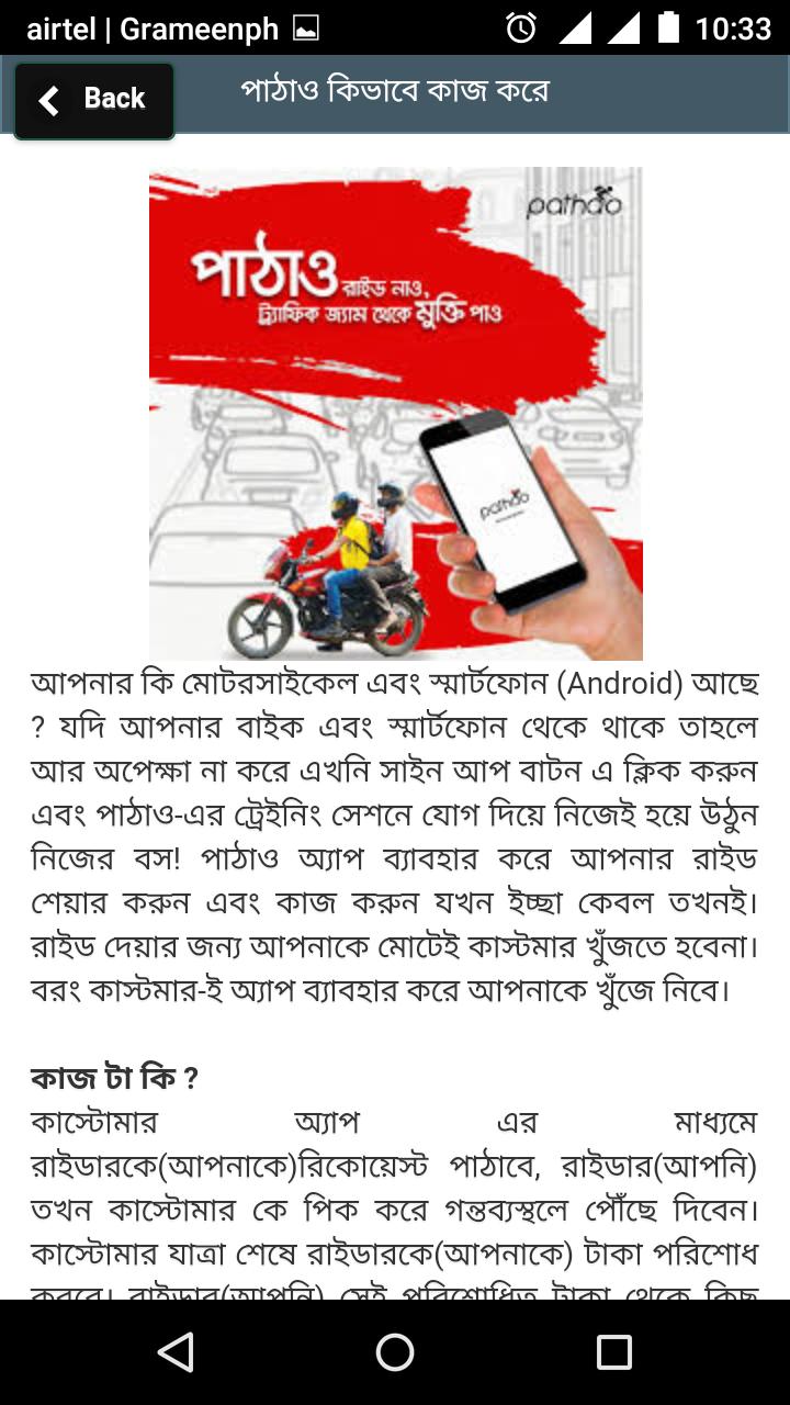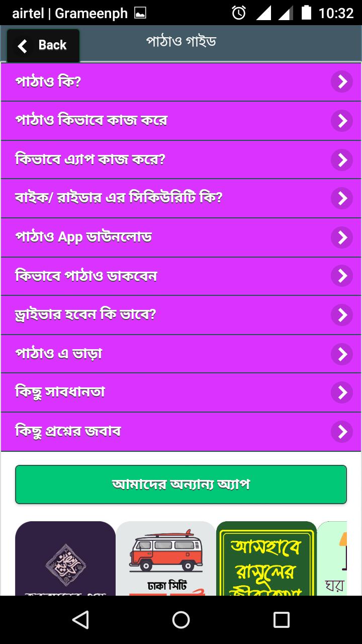 This is an guide app for Pathao users in Dhaka city, Bangladesh. Download free to know Tips and tricks for everyday Pathao ride share. Both Pathao passenger and Pathao driver guide in a single app. How to sign up for Pathao, travel safety, promo code and gift code etc. Taxi and on demand car services and ride share services are getting very popular. Because, besides Pathao app other apps are also getting popular. Pathao is a local company operating in Bangladesh. they have two app: pathao drive and pathao ride. Pathao service use smartphones location (GPS) service to match drivers and riders. By installing our Pathao user guide you can learn how to download Pathao app BD, how to sign up, calling an motorcycle, how to apply promo code or gift code everything you need to know to travel in Dhaka city without Dhaka map offline. So, this app is a complete guide for Pathao in dhaka for both pathao rider app and pathao drive app. As a driver you'll get to know how to sign up as a Pathao driver, finding a trip, how to make cash, payment method etc. So, this pathau guide app will guide you to how to earn money being Pathao biker. As people are less likely to use rent a car taxi or other now a days. So download this app to get pathao drive update always!