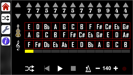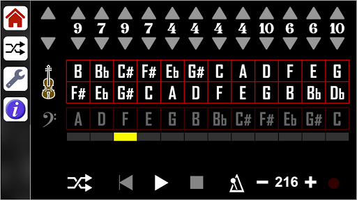 The app creates a progression consisting of 12 note groups made up of 3 notes each. All of the 12 note groups have their own time signature which can be adjusted from 1 to 16 beats per measure, and the tempo can be adjusted from 80 bpm to 400 bpm.