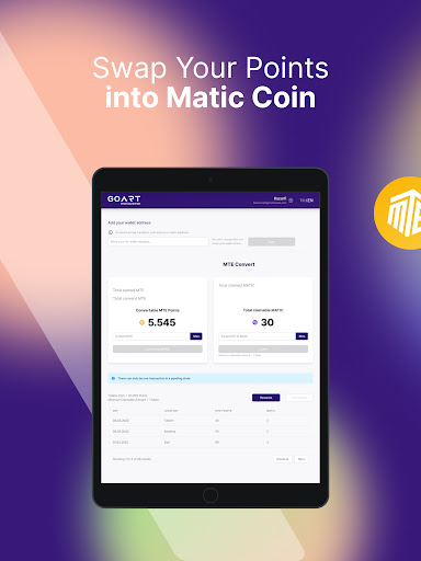 Convert your collected MTE points into crypto currency and transfer them to your wallet.