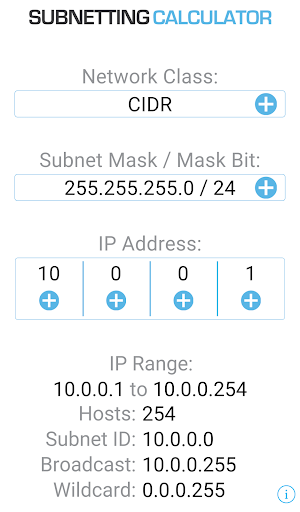 Calculate IPv4 IP address ranges, number of hosts, broadcast address, and subnets masks simply with the Subnetting Calculator. The Subnetting Calculator preforms both traditional classful (A, B, C) subnet mask and classless (CIDR) subnet mask calculations.