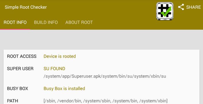 Simple powerful app to tell if your device is rooted. Displays all system information Super user and if busy box is installed along with a whole string of information about the current status of your phone!