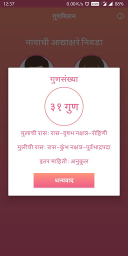 २०२१ च्या पंचांगानुसार गुणमिलन संख्या व अक्षरे अद्ययावत केले आहे.