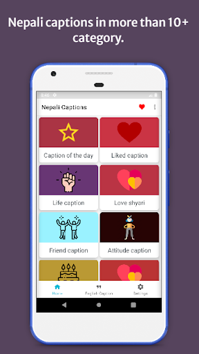 With this application, you can enjoy 1000 Nepali captions in different categories. Use these captions anywhere in your life as Facebook status in Nepali, WhatsApp status in Nepali, insta quotes, Twitter status,, etc and gain more likes and fame in social media.