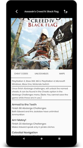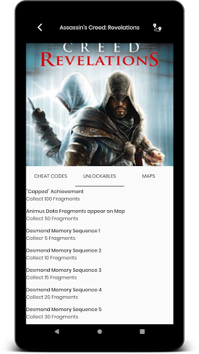 This app is for Assassin's Creed gamer as a personal assistant tool, a game guide, and collectable items in maps.