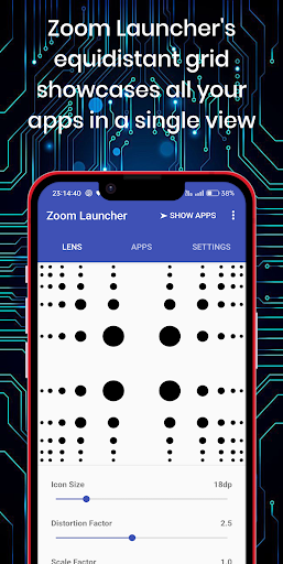 💯 Equidistant Grid: Bid farewell to the hassle of screen size limitations or endlessly scrolling through extensive app lists. Zoom Launcher's equidistant grid showcases all your apps in a single view, ensuring easy access and eliminating the need for extensive searches or tedious navigation.