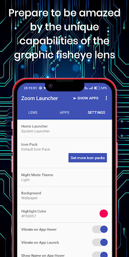 💯 But that's not all! Zoom Launcher goes the extra mile by providing a comprehensive Settings menu, empowering you to tailor the lens to your preferences. Adjust distortion, scaling, icon sizes, haptic feedback, and more, ensuring that your experience with Zoom Launcher is not just efficient but also personalized to your liking.