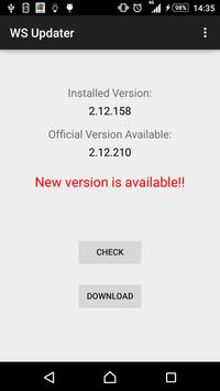 This app will check and update available version from official WhatsApp website directly, and it also has an notification for you if the new version already available.