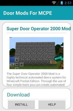 This Door Mods For MCPE is can only be applied with BlockLauncher application and you need install the full version of MCPE and BlockLauncher in your smartphone or tablet.