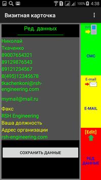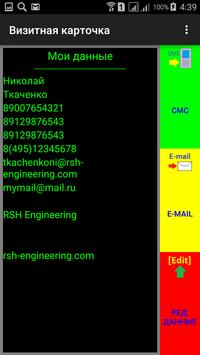 This program can send your business data to your collegue, to your business partner or any person. It is very simple to exchenge your data. You need fill data about yourselves and you can send your data to use text message by phone or by E-Mail.