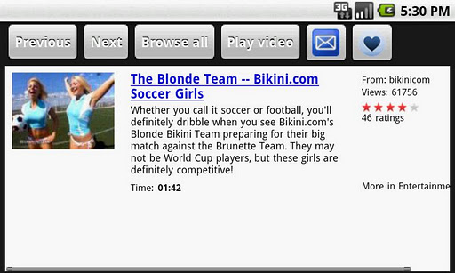 Do you want to see sexy girls from different places in the world ?Watch every day new videos with gorgeous hot babes. No matter if they are brunnette girls, blonde girls, red head girls, ebony girls or latina girls. These awesome videos will be delivered to your phone daily so you can enjoy watching these cute dolls everyday day.Features: ShareIf you find something to share with your friend you can do it via facebook twitter or email FavouritesKeep your favourite videos, add bookmarks so you can watch the videos many times. BrowseVideos can be browsed back and forward Watch Videos in landscape mode.This application is only for adults 18.Youre advised that there is no explicit porn, no pure naked content just hot sexy worldwide girls videos.