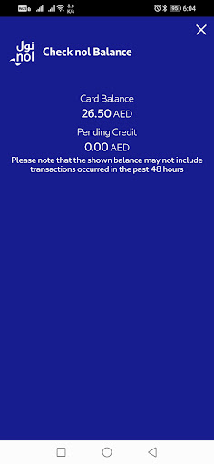 1. Click on the Check NOL Balance box (button) on the Nol App