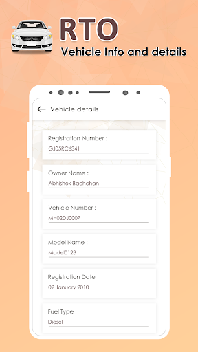 When you are buying used car or someone accident with you, app will help you to vehicle owner details such as his vehicle registration details like owner name, fuel type, registration date, and much more like chassis number and engine number.