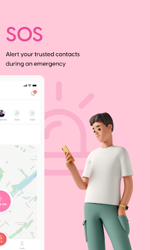SOS alerts your trusted contacts with your location details, warning them that you are in danger. During an SOS, the app captures images and audio recordings. SOS is designed to seek help to rescue you during a dangerous situation.