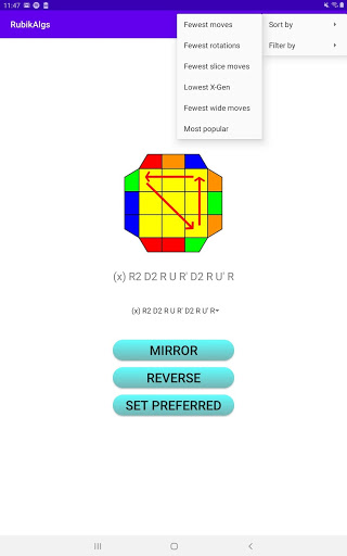With over 6500 different algorithms, you will be able to customize each case filtering or sorting the different algorithms attending to 6 different parameters (rotations, slice moves, wide moves...) and set your preferred ones.