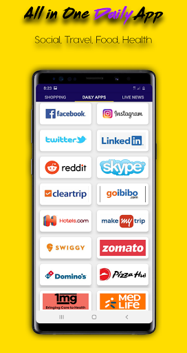The app also includes all your daily apps like all social media apps, food delivery apps, online shopping apps for Grocery and medicine apps. You can also watch live TV channels of India, enjoy movies, watch online web series.
