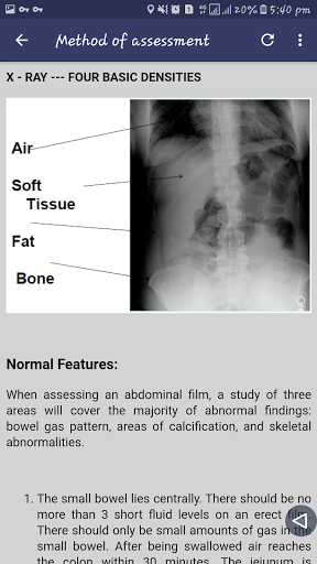 This app bring you abdominal X-ray which is an x-ray of the abdomen. It is sometimes abbreviated to AXR, or KUB. Abdominal x-ray uses a very small dose of ionizing radiation to produce pictures of the inside of the abdominal cavity