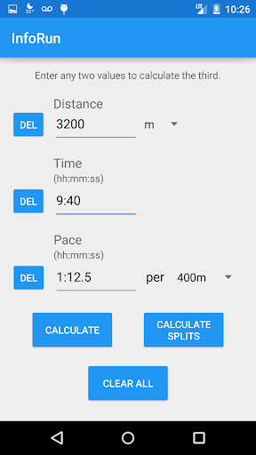 InfoRun is a useful tool for runners. It finds the distance, time, or pace of your run, depending on which two values you give it. InfoRun also generates a splits table of your run.