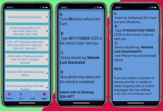 instructions about how to use Samsung Unlock Code;