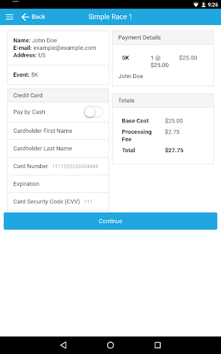 It can be customized to optimize the registration process by eliminating fields and questions during signup – reducing errors and increasing speed. The app can be configured to accept credit cards and/or cash. The app can also work in disconnected mode in cases where Internet may be spotty or unavailable.