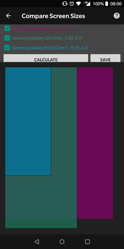 - Compare feature: presents you with a visual representation of your saved screen sizes to directly compare them with each other!