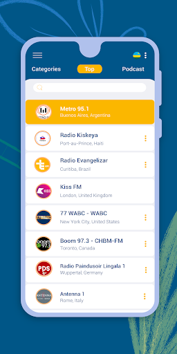 • ''World'' – listen to Android radio stations from all over the world.