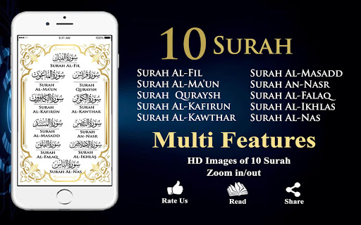These 10 surah are in Arabic text and people can read without internet. Now you can learn 10 surah of Quran Pak Offline.