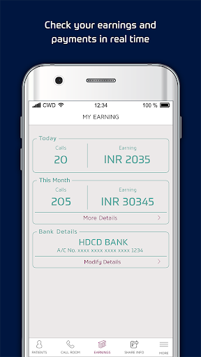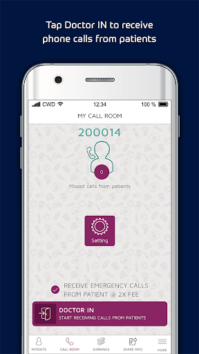 • Just tap on “Doctor-In” to start receiving telephone calls from patient. Patients will dial your DPN in their “CallWithDoctor” App to talk with you on phone. The maximum call duration will be 10mins and you get deserved earnings for every successful call as per the call fee set by you.
