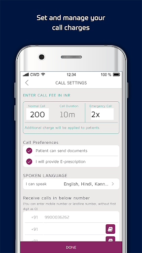 • Register your mobile number to get your Lifetime FREE Doctor Private Number (DPN) and also set your call fee. And then share your DPN with patients, instead of your mobile number.