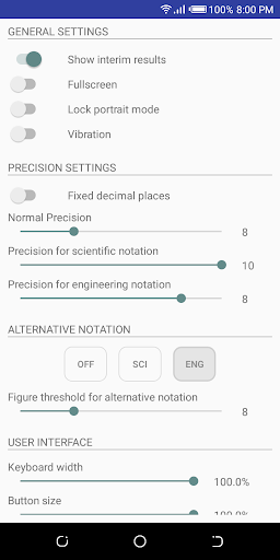 In this app, our main focus is on scientific and engineering calculations. Very intuitive, no ads, just mathematical operations. With this app you can set precision for both scientific and engineering notation to 10 giving you precise results. This app will help you conveniently check your calculations history.
