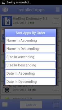 -- Sort app list on the basis of name, size and installation date.