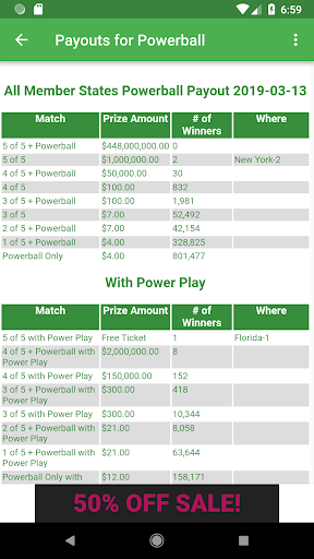 * Payouts - See the number of prize winners for Powerball, Mega Millions