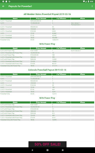 * Payouts - See the number of prize winners for Powerball, Mega Millions