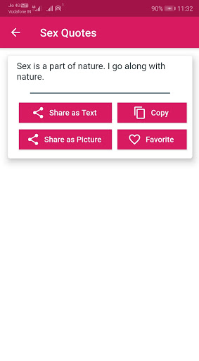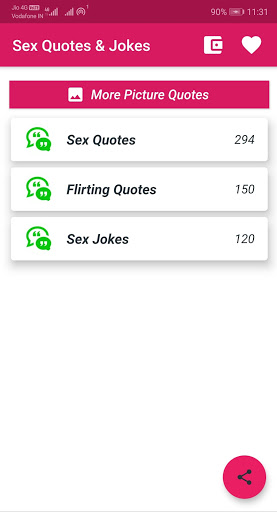 Sex Quotes & Jokes : DP & Status Creator is a great app that provides beautiful thoughts/quotes/jokes for open minded people. This application comes with wide variety of quotes and jokes which can makes you to smile. Share sex & flirt Quotes/jokes in text as well as picture format. You can also create your own picture status with unlimited background images.