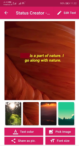 • You can also create a wallpaper or thought picture from your selected thought/quotes. It provides many default colorful background pictures and different text sizes. It provides an amazing photo maker facility from your selected thought/quote.